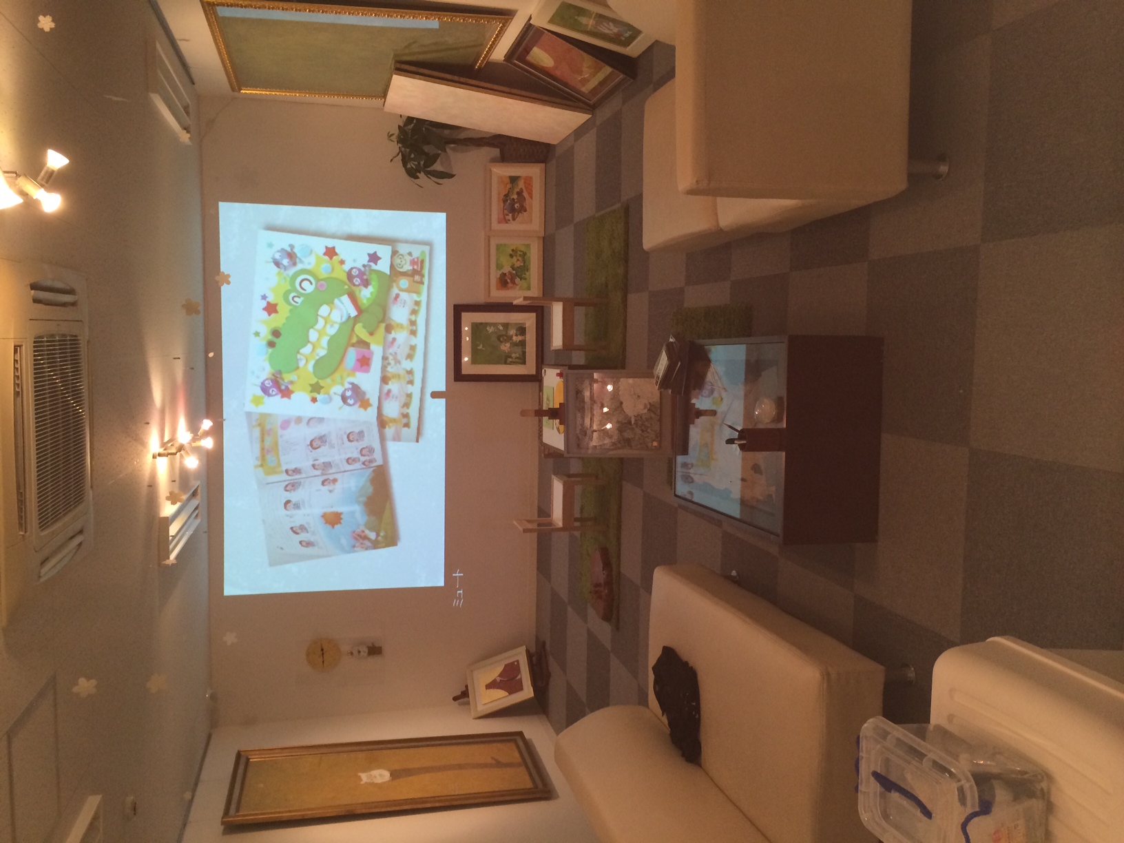プロジェクターの大画面で様々な映像を常時流しております。