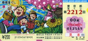 2013.04.04 BLOG 最新の採用情報として・・・ 第2212回東京都宝くじ「春爛漫くじ」 2013年4月1日から4月16日まで 東京都限定で発売中でございます。 こちら弊社イラストが採用されております。 是非ともご覧いただければと思います。 勿論、私は「夢」↑を買いますよ!(笑) Share 前へ 一覧へ戻る 次へ